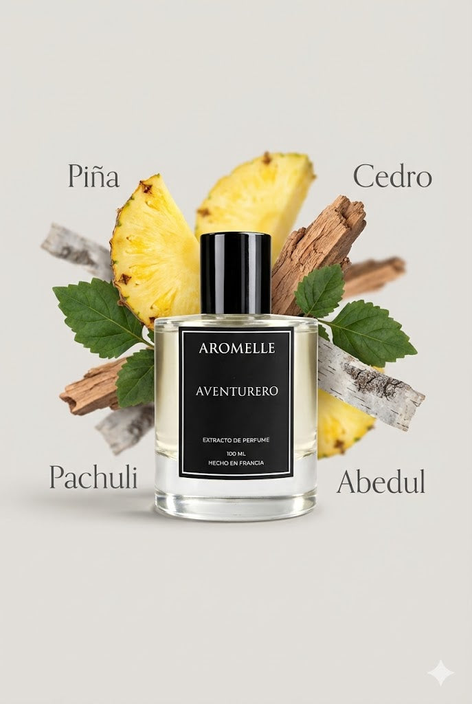 Descubre Aventurero, una fragancia masculina que combina notas cítricas de bergamota con toques frutales de piña para una entrada vibrante. Su corazón ahumado de abedul evoluciona hacia una base amaderada con almizcle y musgo de roble, creando un aroma sofisticado y versátil. Perfecta para el caballero que busca destacar en cualquier ocasión, proyectando confianza y distinción duradera.