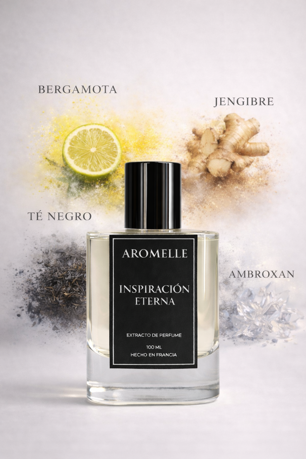 Descubre "Inspiración Eterna", una fragancia que despierta los sentidos con sus vibrantes notas cítricas de bergamota y naranja siciliana. Su corazón de té negro, jengibre y canela aporta un toque especiado sofisticado, mientras que el fondo amaderado con ambroxan garantiza una estela duradera. Perfecta para uso diario, esta elegante composición versátil te acompañará desde la mañana hasta la noche, transformando cada momento en una experiencia sensorial única.